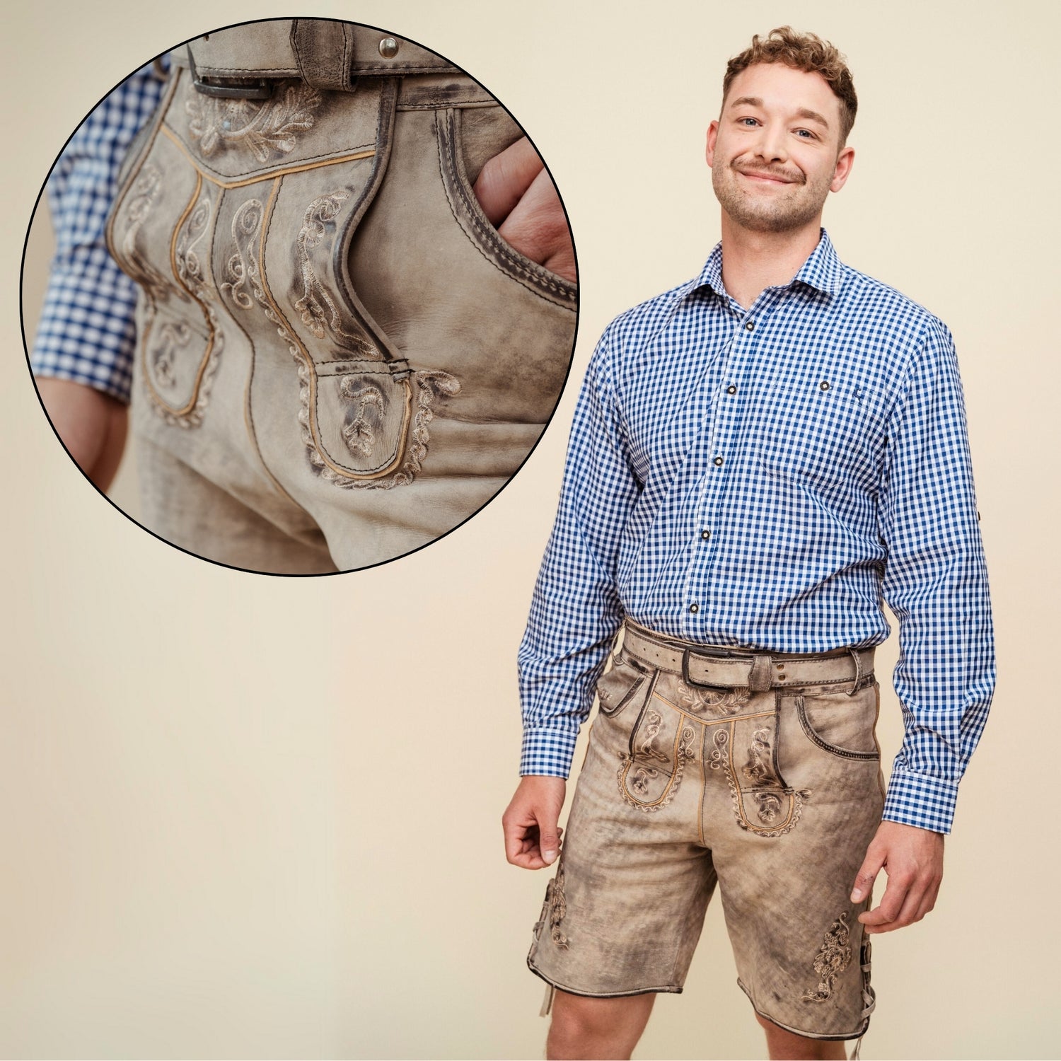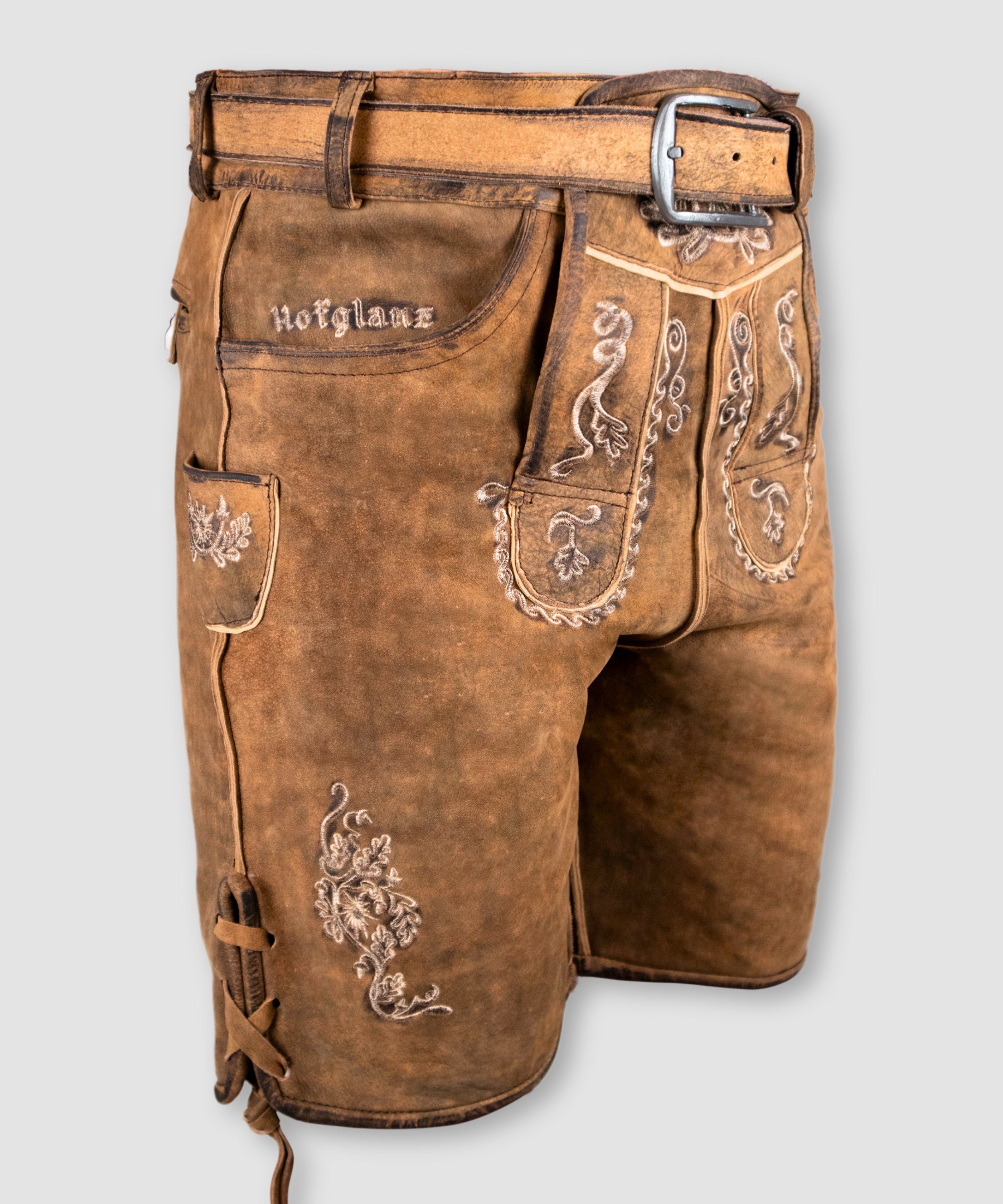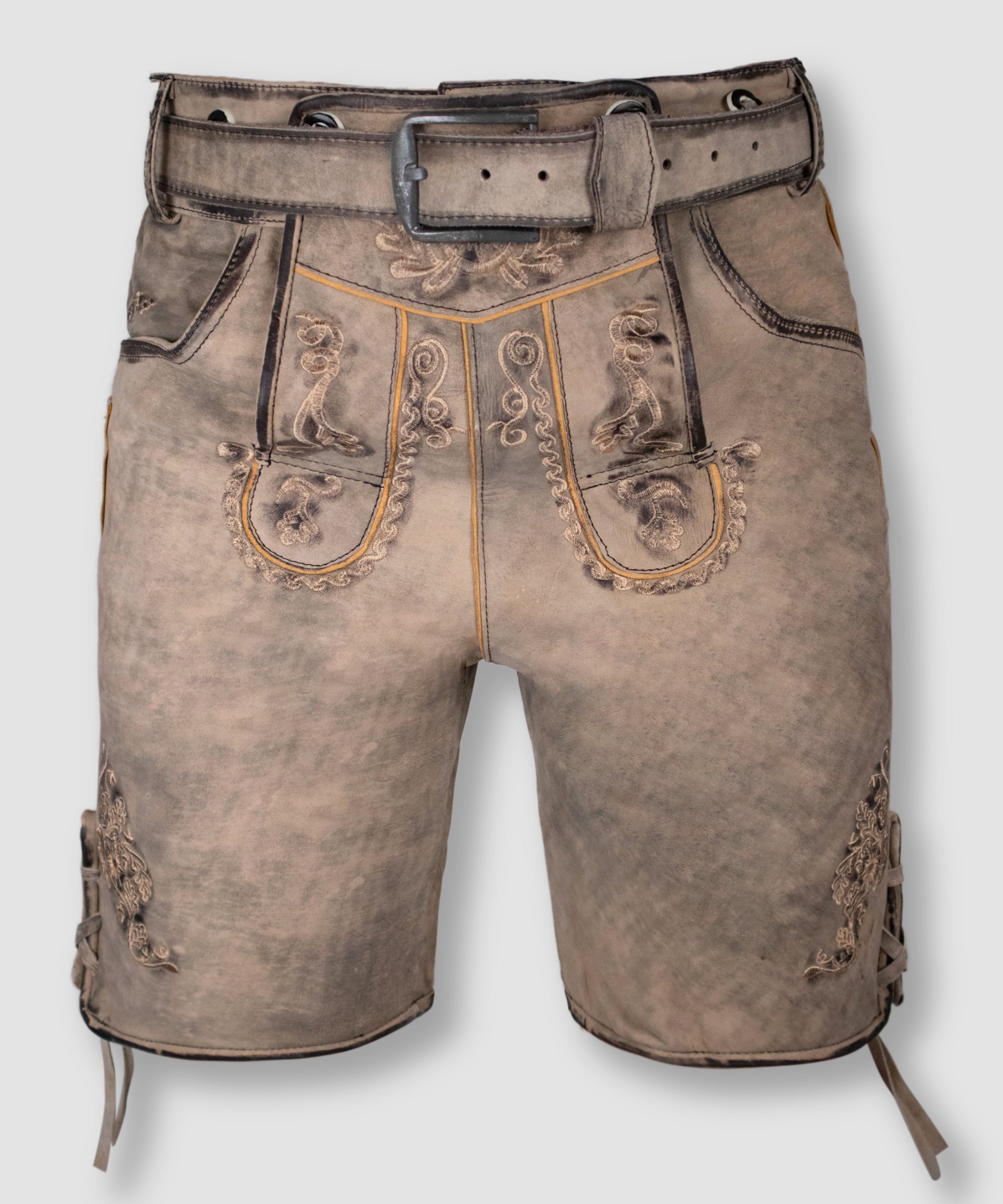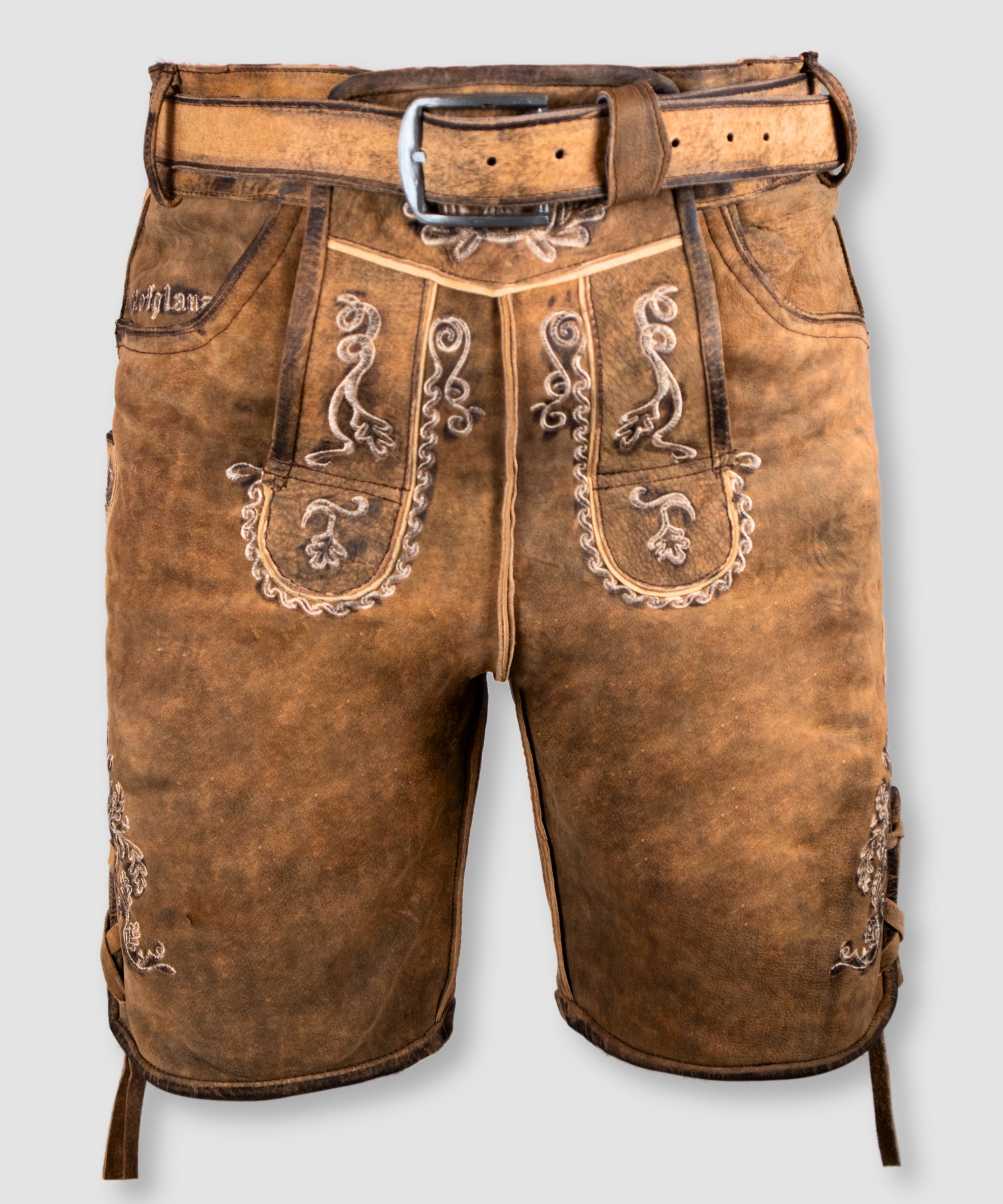 Im Antik-Look gefertigt, strahlt sie rustikalen Charme aus. Die Hose wird inklusive passendem Gürtel geliefert, für eine perfekte Passform und zusätzliche Authentizität. Die traditionellen Verzierungen verleihen der Lederhose eine zeitlose Eleganz, perfekt für festliche Anlässe oder das Oktoberfest.